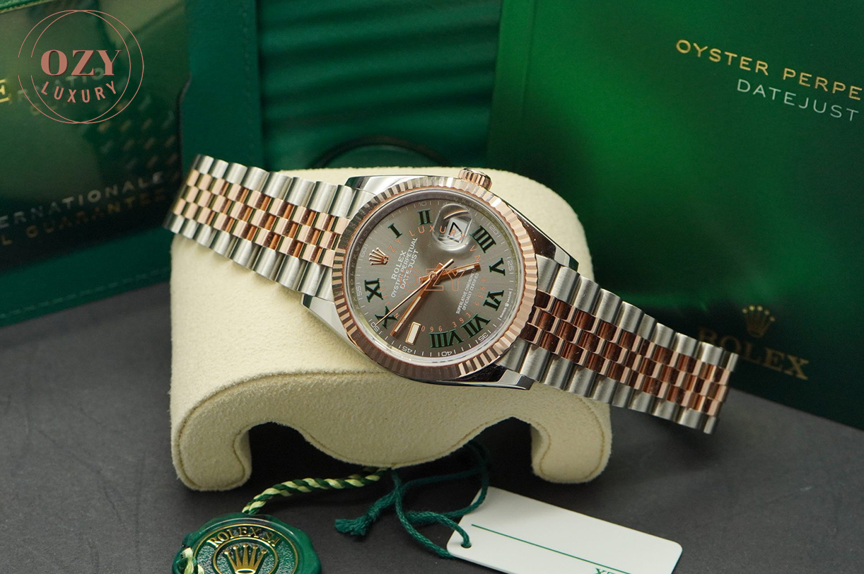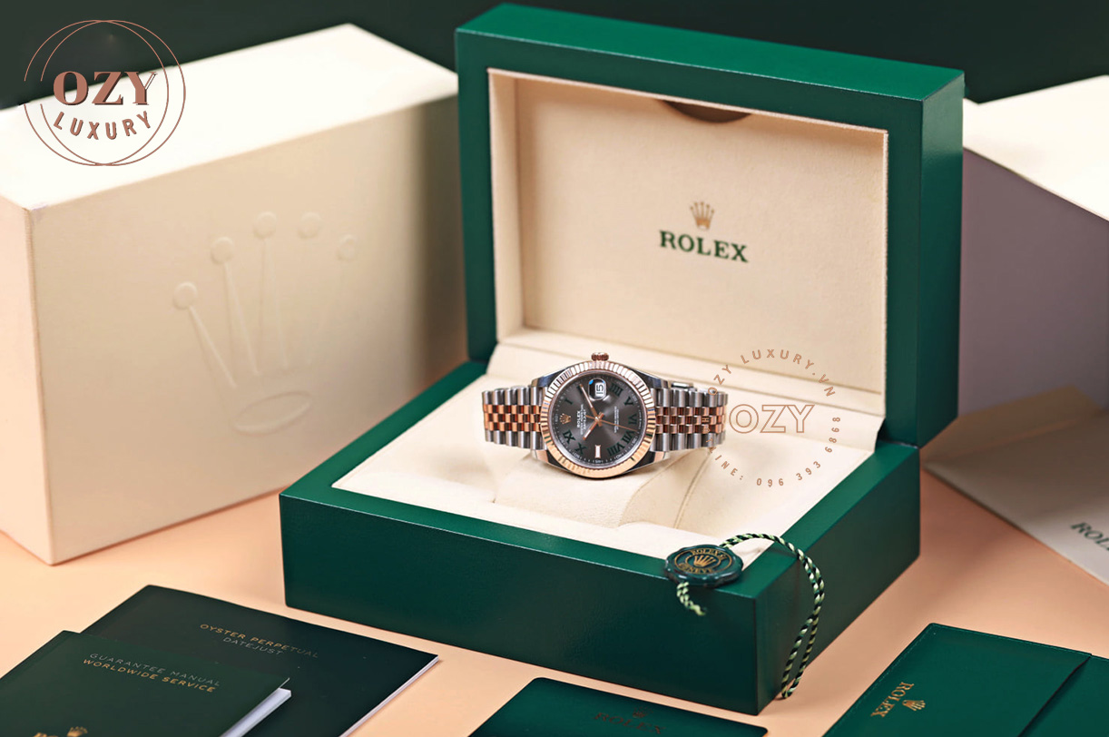 Nhìn ngắm nhiều các tác phẩm kinh điển của nhà Rolex chúng ta sẽ nhận ra sự sáng tạo cùng con mắt tinh tường của nhà thiết kế. Hôm nay, mời bạn cùng Ozyluxury.vn khám phá 1 chiếc đồng hồ điển hình của sự sáng tạo độc đáo kể trên. Đó chính là mẫu Rolex Datejust Rolesor Everose Gold Slate Green Roman Dial. Ông lớn Rolex thật biết cách điều chỉnh chiều hướng của người nhìn, dẫn họ đi hết từ bất ngờ này đến bất ngờ khác. Ở Rolex Datejust Rolesor Everose Gold Slate Green Roman Dial, với thiết kế vốn đã rất quen thuộc thì sự bất ngờ này có lẽ sẽ đến nhiều nhất từ phần mặt số của đồng hồ.